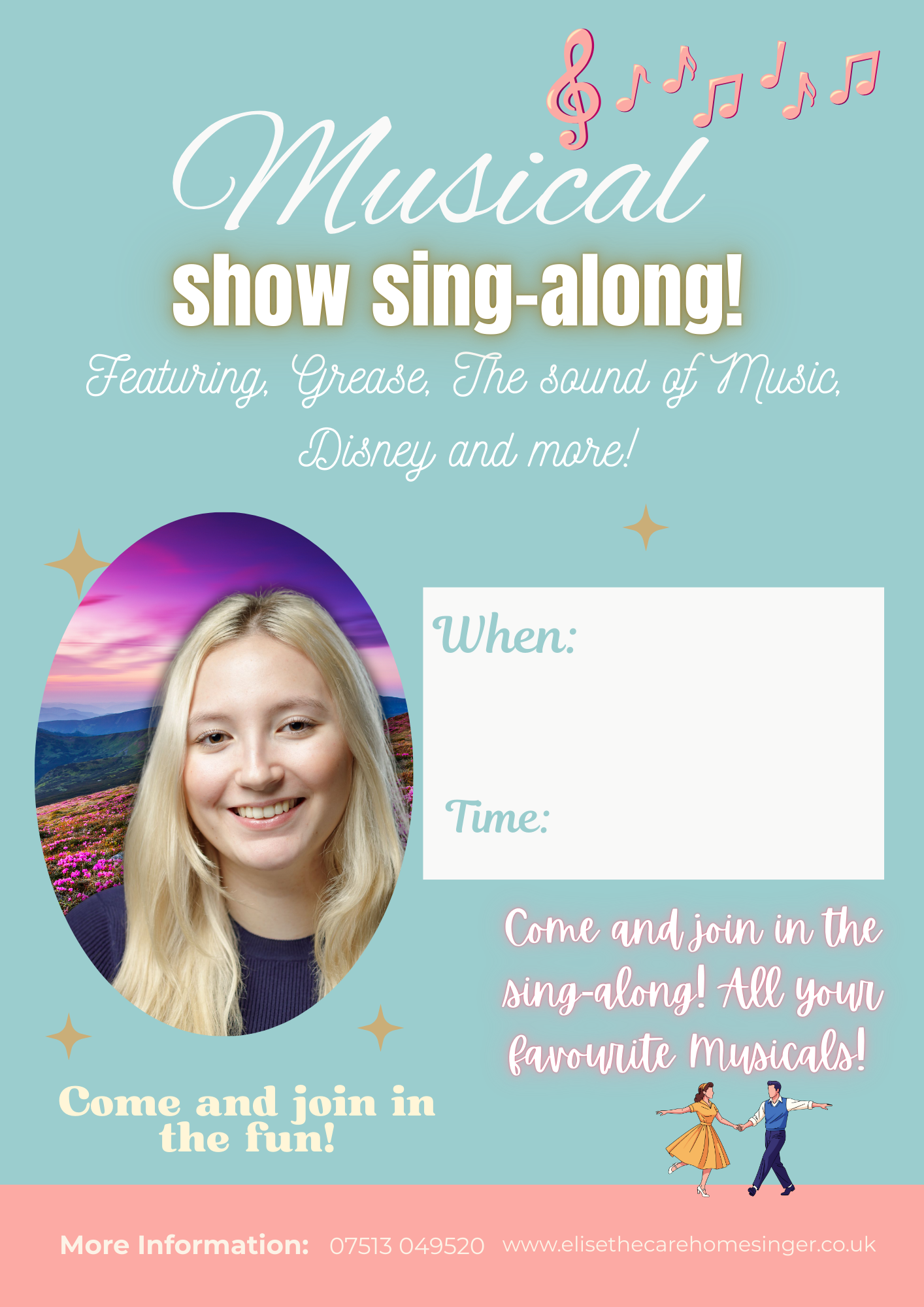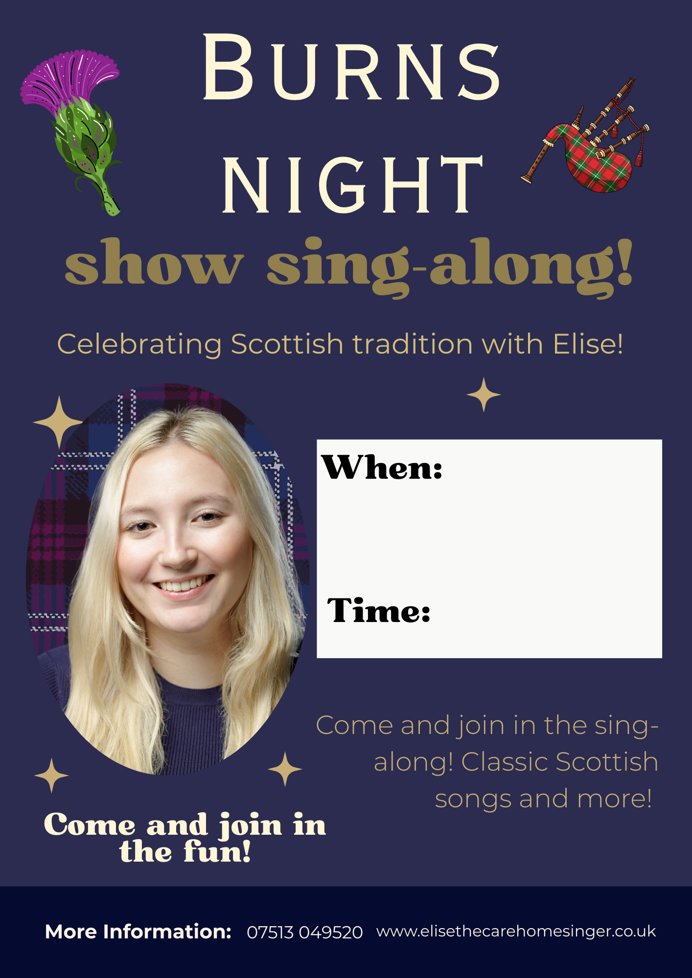 Hello! I'm Elise, a professional care home singer and entertainer bringing joy to elderly residents across Central Scotland.