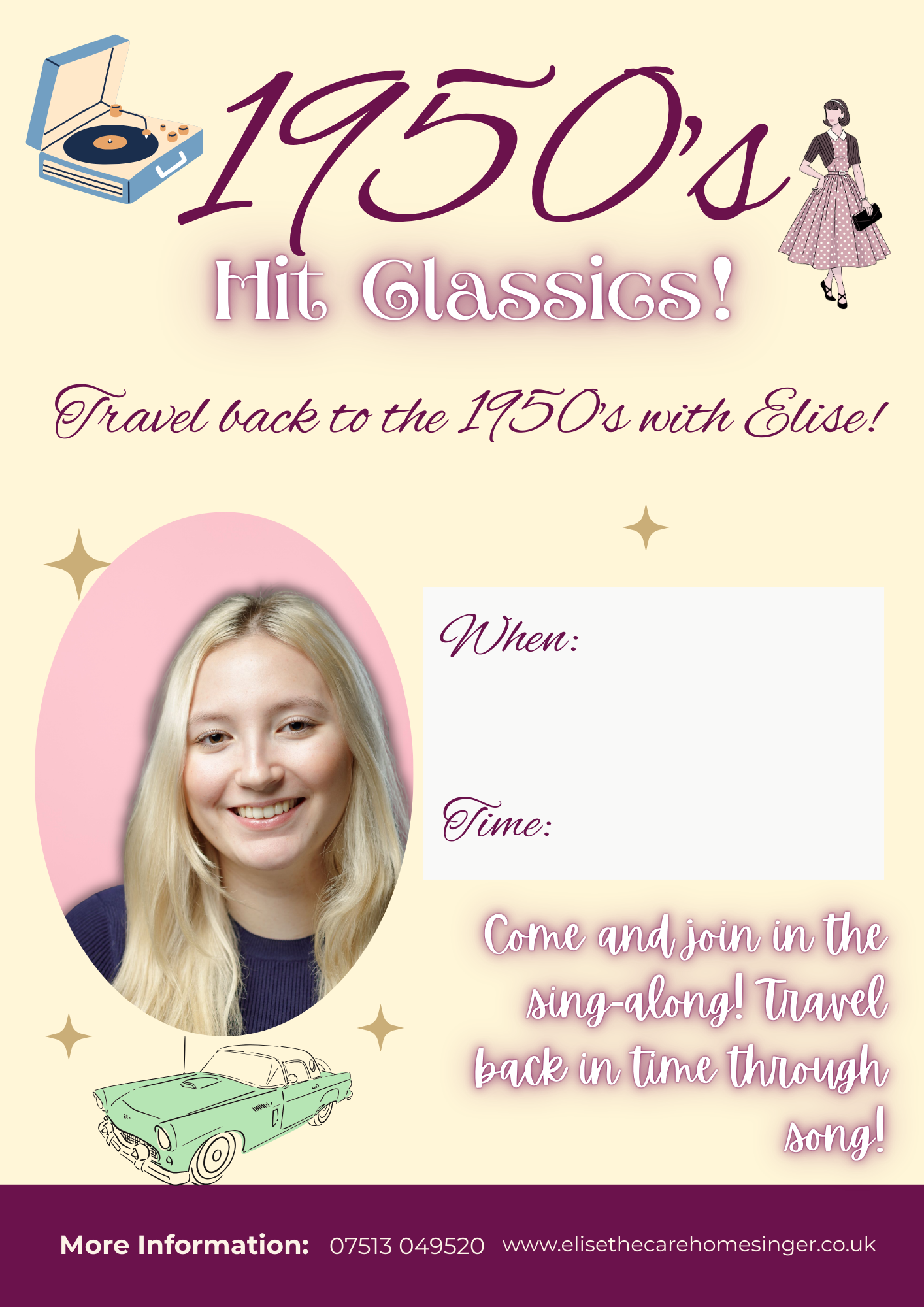 Hello! I'm Elise, a professional care home singer and entertainer bringing joy to elderly residents across Central Scotland.